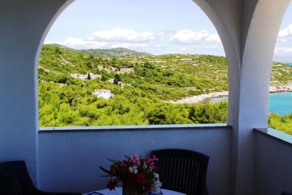 With 65 m2 of area it is located on the first floor and has a separate entrance. It consists of two bedrooms, bathroom, living room, dining room and kitchen. The apartment has a terrace of 10 m2 overlooking the archipelago of islands Budihovac and Ravnik. The apartment also has a parking space.